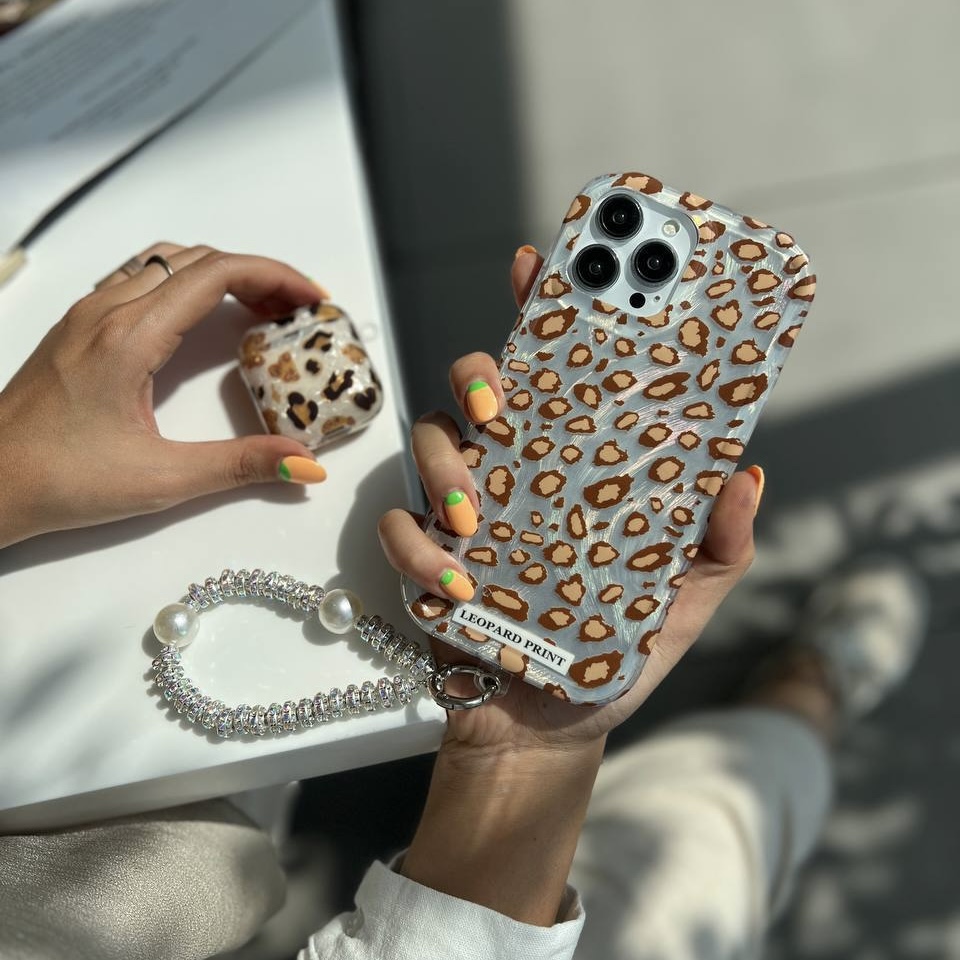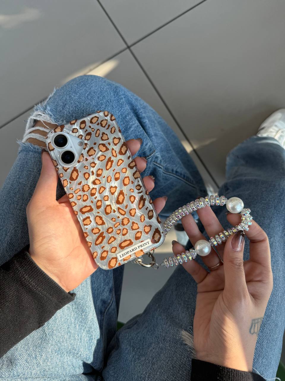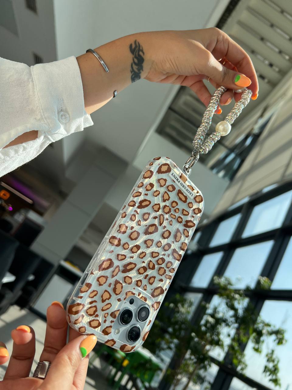 قاب پلنگی براش همراه با آویز توپی مرواریدی کد C3789