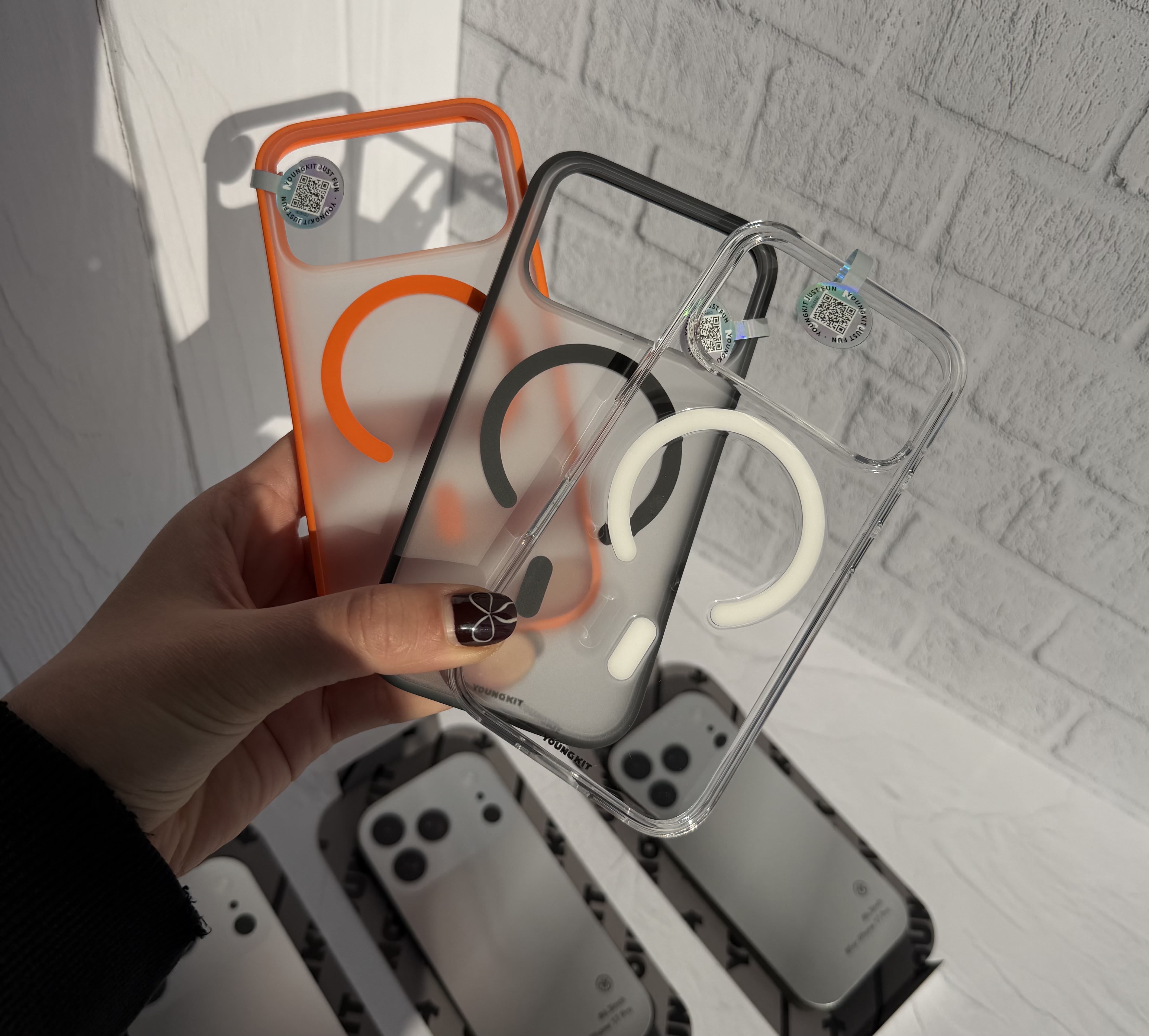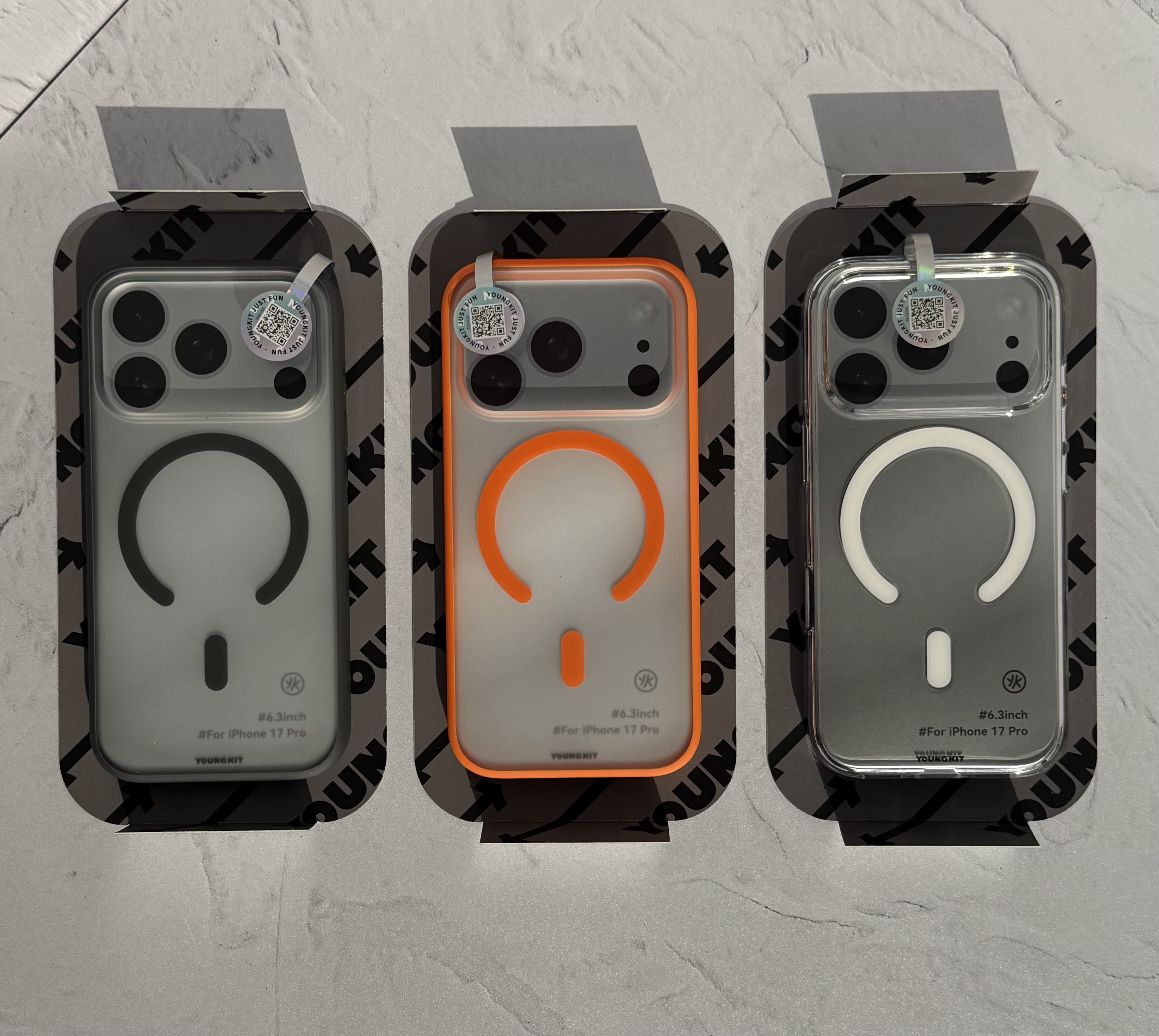 قاب youngkit clear که روی گوشی شما جلوه میکند دارای مگ سیف ساپورت که قابلیت شارژ به صورت وایرلس را فعال میکند ، در سه رنگ متناسب با گوشی ۱۷ پرومکس و ۱۷ پرو شما